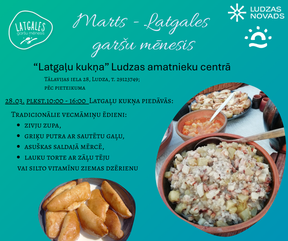Latgales kulinārā mantojuma kopēji Latgaļu kukņa piedāvās 28. 03.  saviem viesiem tradicionālās latgaliskās garšas,  laikā no 10.00- 16.00 .